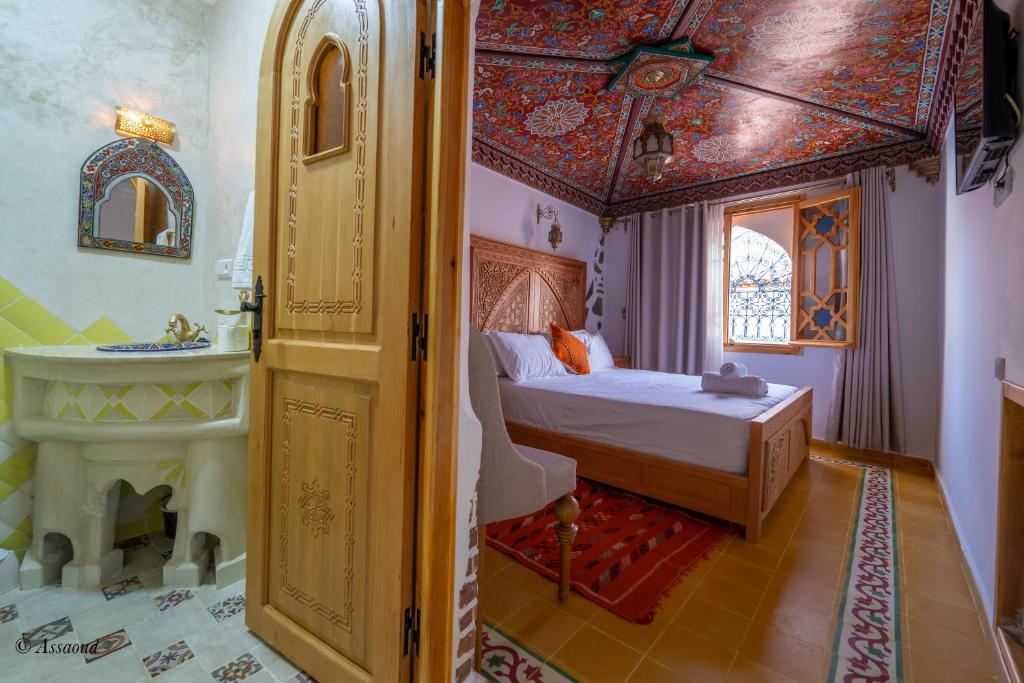 Ce riad à Chefchaouen propose des chambres authentiques, équipées de balcons offrant un panorama exceptionnel sur la médina. Baignées de lumière, elles allient confort moderne et charme traditionnel avec leurs têtes de lit sculptées, leur linge soigné et leurs salles de bains agrémentées de zelliges colorés. Les visiteurs bénéficient d’un service haut de gamme avec une connexion Wi-Fi gratuite, un restaurant proposant des saveurs locales, une réception ouverte 24h/24 ainsi qu’un service de navette aéroport. Le matin, un petit-déjeuner savoureux est servi en terrasse, offrant une parenthèse gourmande face à la ville endormie.