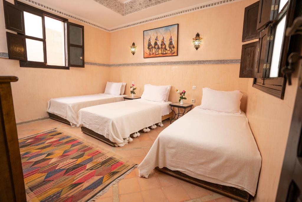 Le riad propose différentes catégories de chambres : chambres doubles, chambres triples et chambres familiales. La capacité varie en fonction du type choisi, allant de 2 à 3 personnes par chambre (avec possibilité d’ajouter un lit d’appoint sur demande).