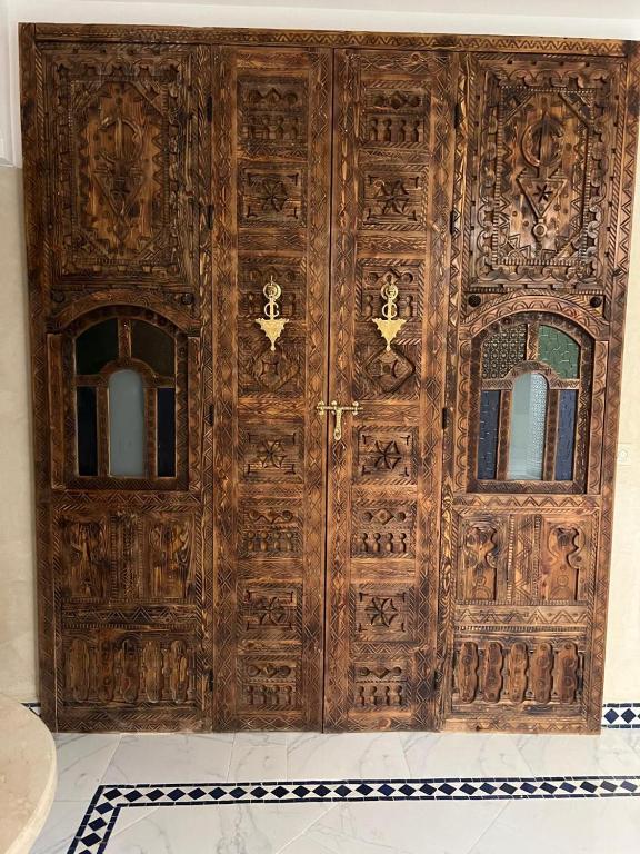 Unique et empreint d’une authenticité rare, le Riad Rkiya with Courtyard dévoile une architecture raffinée où le bois sculpté, les ferronneries délicates et les motifs traditionnels invitent à l’évasion. Chaque détail révèle un savoir-faire ancestral, de la finesse des luminaires en laiton aux somptueux zelliges qui habillent le sol et les murs. Les alcôves voûtées, les portes finement ouvragées et les espaces de détente ombragés confèrent au lieu une atmosphère intime, propice au repos et à la contemplation.